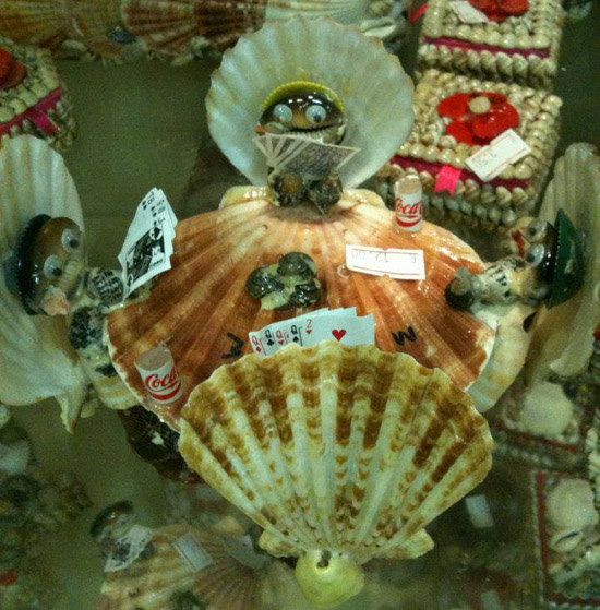 Quand'è no vi parlavamu di l'orrori di i magazini di ricordi : hè goffu, piglia u spaziu, dunque hè perfettu. A mo preferenza và à sta tavulinata d'òstrice chì ghjocanu à u poker, ch'aghju trovu in Grecia, ma ùn aghju u ligame per cumpralla. Scusate.