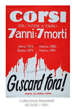 Saria troppu riduttore di parlà unicamente di i naziunalisti cum'è attori di a mossa cuntestataria di l'anni 70 è 80. A mostra st'affissu di u Parti Communiste Français, chì, un tempu, hà fattu sentu a so voce cù i naziunalisti pè cuntestà u guvernu di Giscard è l'opere di i « barbouzes ».